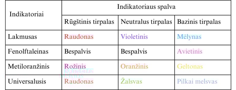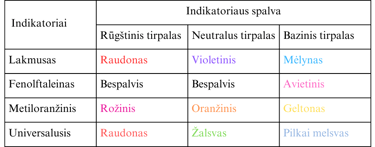 Medžiagos, kurios rūgščių ir bazių tirpaluose keičia spalvą, vadinamos indikatoriais.