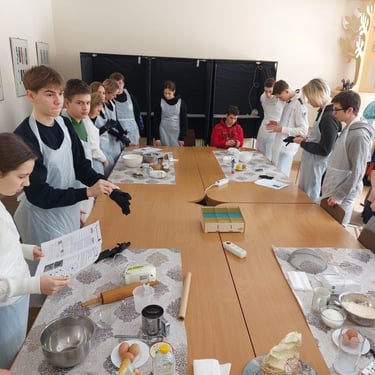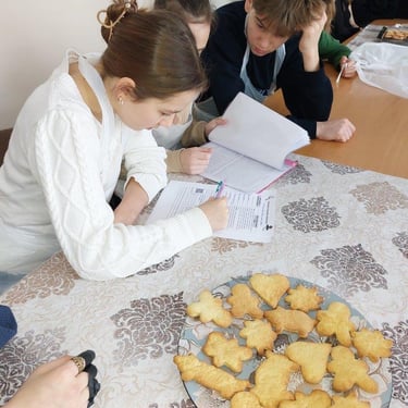 Šios integruotos pamokos metu, mokiniai ruošė skirtingas sausainių tešlas, naudodami skirtingą gamybos technologiją ir ingredientus. Jie analizavo cheminę tešlos sudėtį, ieškojo kokie cheminiai elementai ir vitaminai sudaro tešlą. Be to, šioje pamokoje skatinamas bendradarbiavimas ir komandinis darbas. Mokiniai dirbo grupėse, sudarytose iš skirtingų gebėjimų mokinių, kurie sujungė savo žinias ir įgūdžius, atliekant užduotis. Ši pamoka ne tik ugdo komunikacijos kompetenciją, bet ir parodo mokiniams, kaip skirtingos disciplinos gali veikti kartu, siekdamos bendro tikslo.