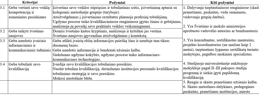 III veiklos sritis: asmeninis profesinis tobulėjimas.