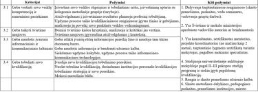 O dabar laikas kriterijams. Kiekvieną iš jų aprašykite lentelėje ir būtinai juos pagrįskite, bei pateikite komisijai įrodymą.
