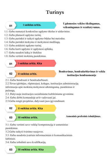 Parenkite turinį, kuriame kiekvienai sričiai priskirkite spalvą ir išskirkite kriterijus, vėliau ruošiant segtuvą