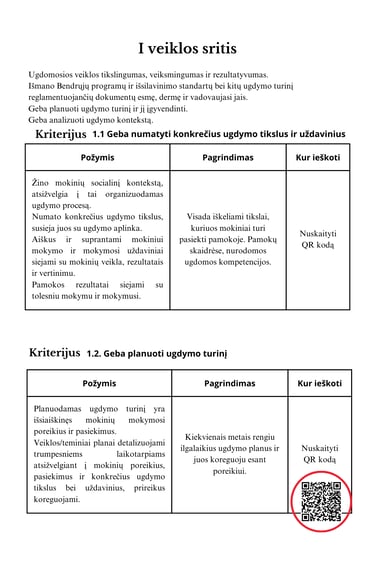 Naudokitės skaitmeninėmis technologijomis, kurkite QR kodus, kuriuos nuskaitę komisijos nariai galėtų rasti pagrindimą vienam ar kitam kriterijui. Pvz. Ilgalaikius ugdymo planus sukelkite į google drive ir jam sukurkite QR kodą.