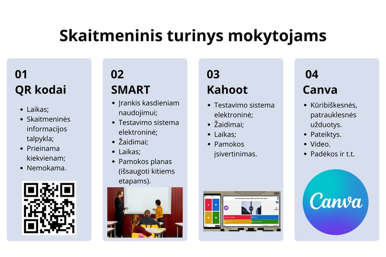 Atsižvelgiant į pasikeitusios Y ir Z kartos informacinę elgseną, technologijų teikiamas galimbes, turinio ir metodų naujumu į mokymosi procesą įtraukiamas skaitmeninis turinys, kuris palengvina mokytojų kasdienę veiklą.