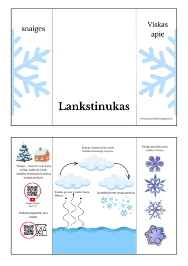 Ši skirta vaikams tyrinėti ir sužinoti kuo daugiau apie žiemą iš dangaus krintančias snaiges. Ši veikla skatina vaikus būti aktyviais ir kūrybiškais, o tuo pačiu metu moko juos apie gamtos stebėjimą ir tyrinėjimą. Atsisiųskite nemokamą lankstinuką, kuriame rasite snaigės formavimosi ciklą, QR kodą su video filmuku apie snaiges, ir smagią užduotėlę - sukurk savo snaigę. Šios veiklos maketą galite rasti paspaudę mygtuką ,,Įsigyti".