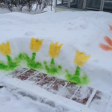 Leiskite vaikams svajoti ir kurti, lai žiemą žaliuoja medžiai ir žydi gėlės. Pieškite ant sniego ir tegul vaikų darbai džiugina bendruomenes.