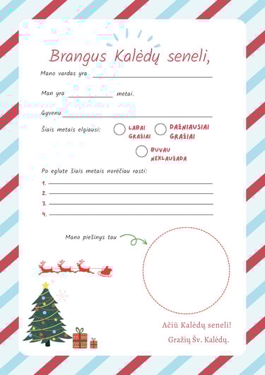 Kaip gi žiema be laiško Kalėdų seneliui? Ši veikla šilta ir jauki, suburianti visą šeimą drauge. Gamtamokslinis ugdymas dovanoja Jums laiško maketą, nudžiuginkite vaikus pildydami jį kartu.