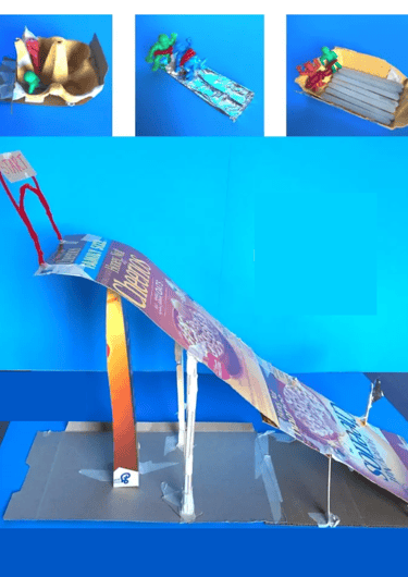 Iš namuose turimų kartono, pagaliukų ir kitų žaliavų pastatykite trasą. Sukurkite įvairių rogių, iš folijos, popieriaus, pagaliukų ir pan. Ieškokite geriausio konstrukcinio sprendimo, kuris toliausiai nučiuoš, kuris greičiausiai ir pan.